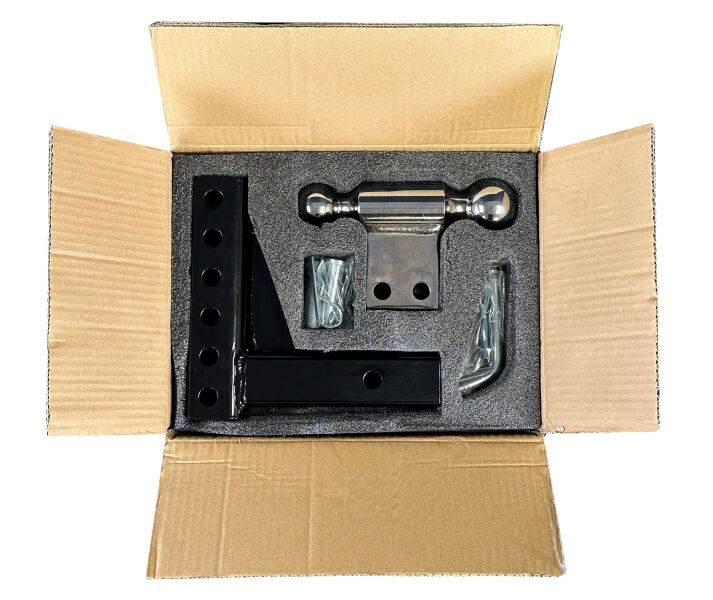Steel Dual Ball: 2” & 2-5/16”; Steel Shank - Glossy Black; Drop – 6”; Rise – 6”; Fits 2” Hitch; 7,500 / 10,000 lbs GTW; 1 Year warranty