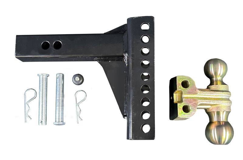 Steel Dual Ball: 2” & 2-5/16”; Steel Shank - Glossy Black; Drop – 6”; Rise – 5.25”; Fits 2” Hitch; 10,000 / 14,000 lbs GTW; 1 Year warranty