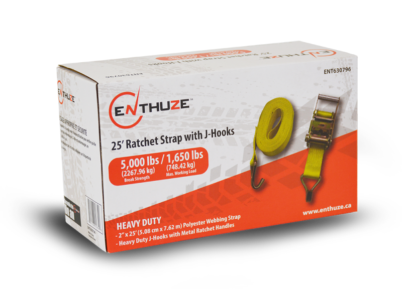 Enthuze Ratchet Strap w/Double J-Hook, 2" X 25ft 5000lbs Ratchet Tie Down Strap Enthuze #ACTENT630796