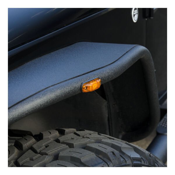 ARIES fender flares help transform your Jeep Wrangler into the ultimate trail hog with their lightweight aluminum construction, 4" width and vehicle-specific contour. To make your mudding machine safe on the trail and on the road, ARIES Jeep fender flare side markers offer bright, DOT-approved LED light and a splice-in installation to your factory harness. When installing ARIES Jeep fender flares, the OEM side markers on your Jeep must be removed. However, you don't have to play the outlaw just to add some flare to your ride. ARIES Jeep side markers easily mount onto the side of the fender flares and offer a DOT-approved light. The LED components are long-lasting and built to shine brightly for added safety on the road. Installation of Jeep side marker lights is simple. The markers set into a plastic seat on the surface of the fender flare and use two set screws for a secure mount. The wiring splices directly to the existing factory wiring harness of the OEM side markers and is able to be channeled through the frame of the fender flare to keep it well-protected from rust and grime. Each side marker comes with color-coded wires and butt connectors for a complete installation. These side markers are compatible with ARIES front Jeep fender flares #1500201 and #1500202.