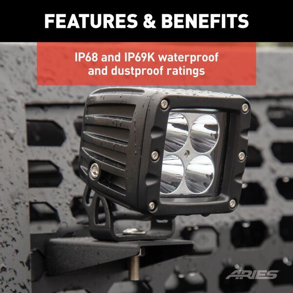 ARIES 1501252 2-Inch Square Cube LED Lights, 2,200 Lumens Spot Beam, Waterproof and Dustproof, 2-Pack