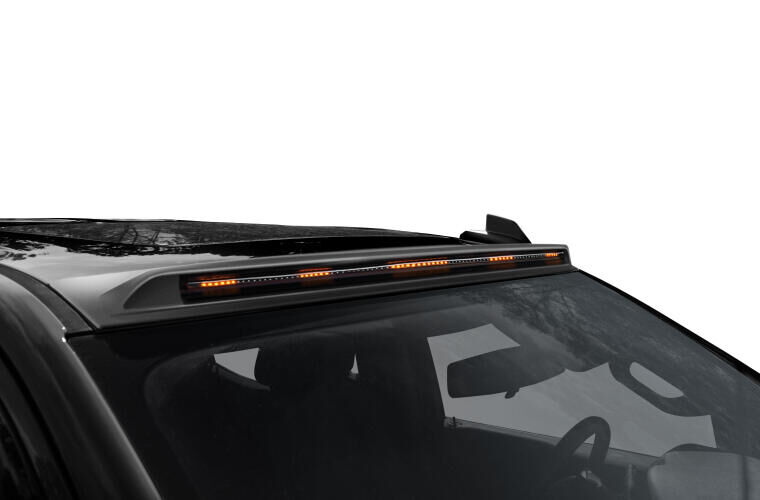 The AeroCab™ Pro Marker Light features a continuous LED light bar with sweeping motion rather than individual marker lights, housed within tough, Dura-Flex ® 2000 TPO material. It’s easy to install in minutes using 3M automotive adhesive or mechanical fasteners—no drilling required for standout style at the top of your windshield. Available in textured matte black finish. Backed by our three-year Warranty.