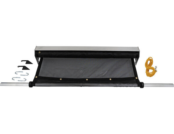 Buyers Products Pull-Style Tarp System with Spring Assist includes everything you need to cover and protect your truck's load.The Pull-Style Tarp System features spring-assisted control to maintain tension for easy retracting. A 20 ft pull rope is included. It also includes an aluminum wind deflector that protects the tarp from wind and weather bombardment. At the rear, an extruded aluminum tension bow keeps the tarp from flapping in transit.Get the ultimate in coverage with your choice of a mesh or solid vinyl tarp to fit your dump bed. Tarps feature brass grommets and heavy duty double-stitched and reinforced hems. The solid vinyl tarp is rated up to 400 F for covering asphalt.