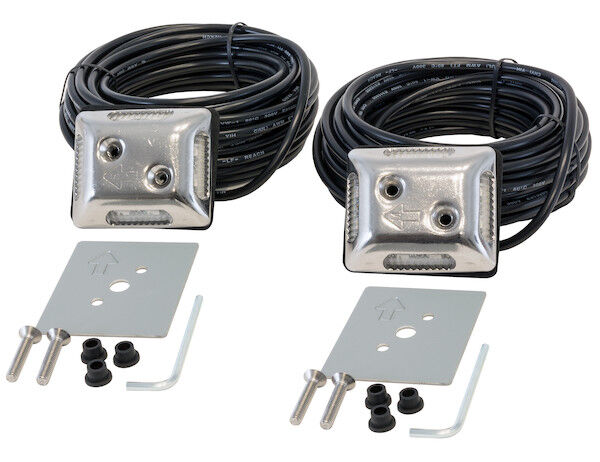 Buyers Products Crush-Resistant Strobe Light Set features two multi-directional strobes. Patented gyroscopic technology automatically turns the strobes on when in a horizontal position and off when vertical, making them ideal for lift gates, ramps, tailgates, and other similar applications. Their durable stainless steel construction protects them from forklifts and other common ground-level impacts. The automatic on/off function can be bypassed for traditional strobe uses, like marking the corners of dump trucks, bumpers, outriggers, or service bodies. The lights must be wired to an auxiliary switch (sold separately, see "Accessories" below) to be manually actuated for these applications. The strobes can be wired for synchronous or alternating patterns and feature a 35 ft cable. The kit includes stainless steel mounting hardware, 6 extra wiring grommets, a rubber gasket, and backing plates for each light. The lights are backed by a 5 year warranty.