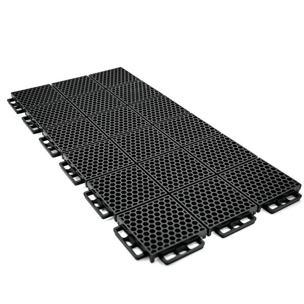 Each tile is 9" x 18"; 8 pk. = 9 sq. ft.; Modular tile system designed for ultimate functionality and protection; Pass-through holes and channeling allow for drainage and airflow – making it easy-to-clean; Link and fastener system provide 3 installation options: floating, partially floating, or fixed; Recessed and counter-sunk fastening slots eliminate exposed screw heads; Built to stand the tests of time against all powersports vehicles – stud and carbide safe