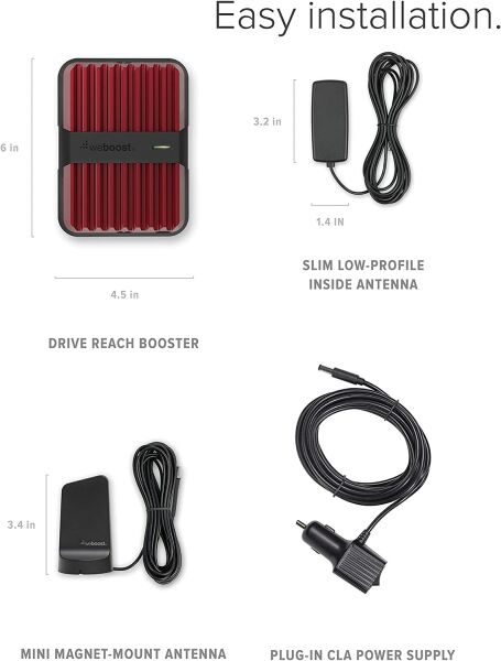 It’s designed for use with all cars, trucks, and SUVs.; Enjoy better streaming when you're driving or parked.; Drive Reach boosts cell signal on all available network speeds, including 5G.; Works with all phones on all CA carriers; DIY installation; Designed to be easily installed, the kit comes with everything you need.
