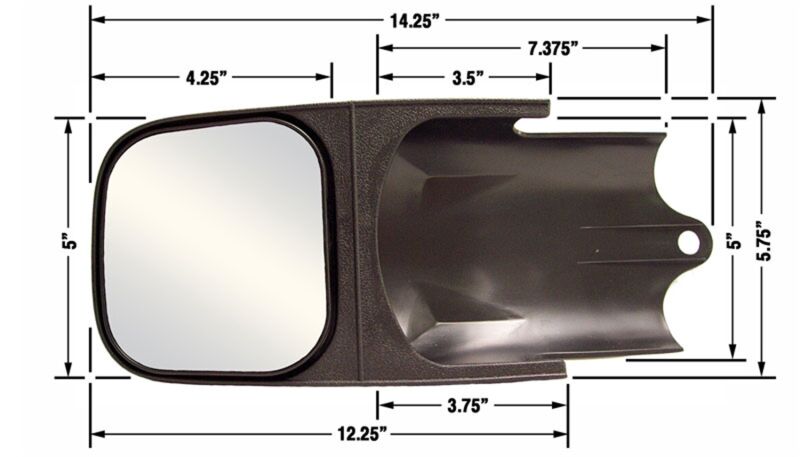 Custom Towing Mirror Durable, aerodynamic, and sleeve fitted to your vehicles exact specifications. No tools are required, and no marks or holes are left behind. Includes 1 LH or RH mirror, 1 knob, 2 hooks, and instructions.