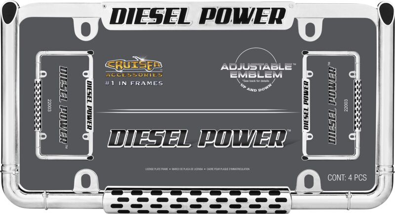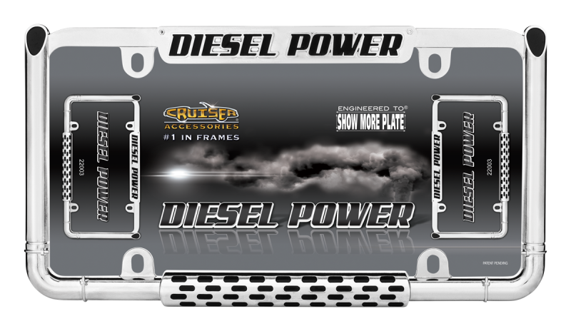 Our diesel frame is perfect for the diesel addict featuring 2 smoke stacks on each side, a grill to give a realistic appearance and an adjustable 'Diesel Power' emblem at the top to finish the look.