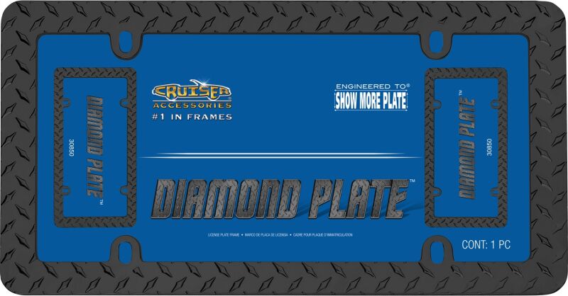 This matte black diamond plate gives your vehicle a finished rugged and durable look and maximizes visibility of the license plate