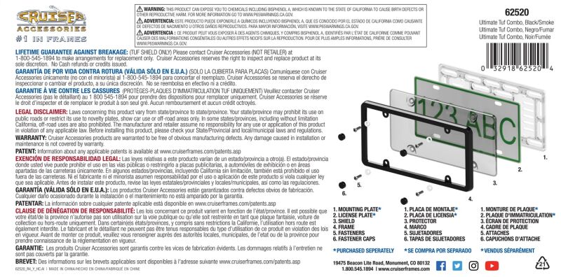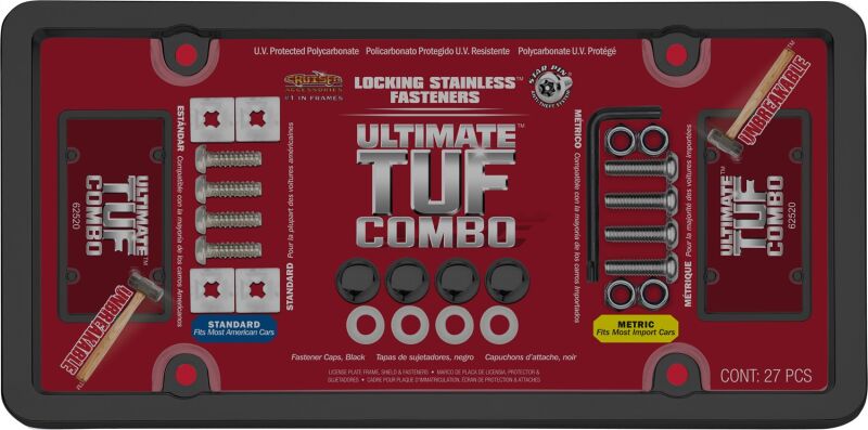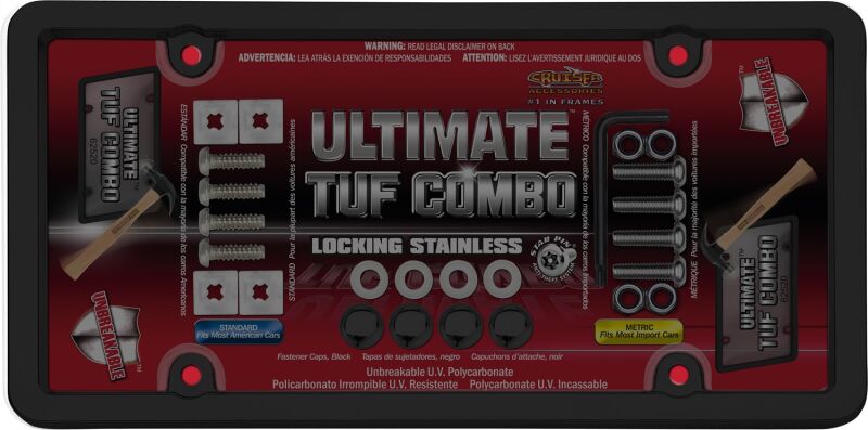 The Ultimate Tuf Bubble Novelty Plate Shield Combo features a polycarbonate unbreakable smoke-tinted Tuf Bubble Novelty Plate Shield, a superior fitting chrome plated frame and anti-theft hardware