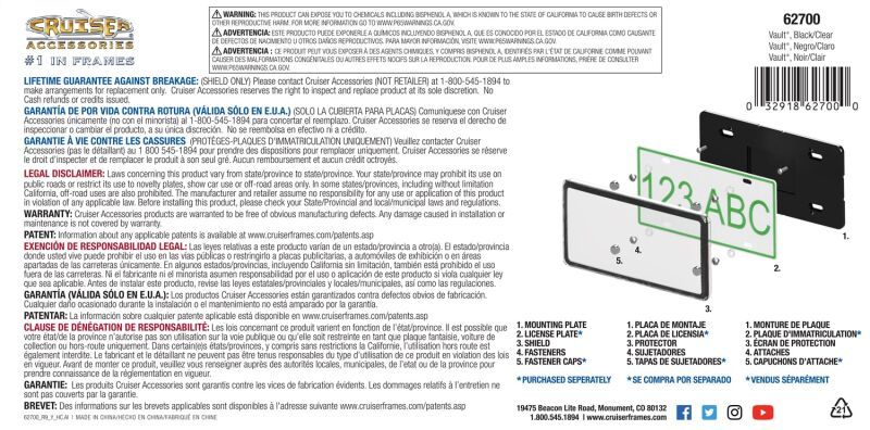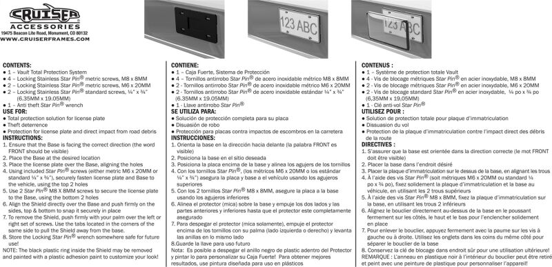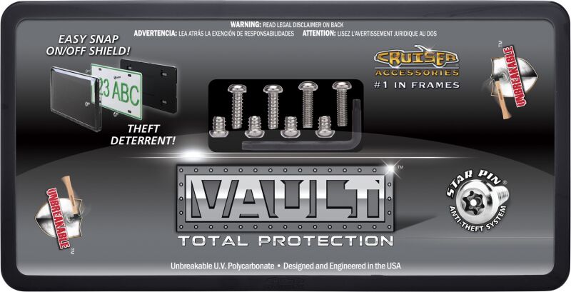 Designed and engineered in the USA! Easy snap on/off shield. Mounting plate, frame insert and polycarb shield combo enhances look of your license plate while protecting it from the elements and theft.