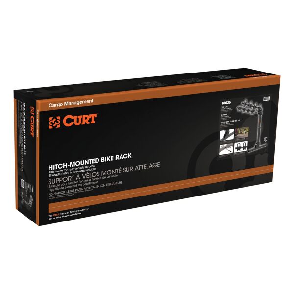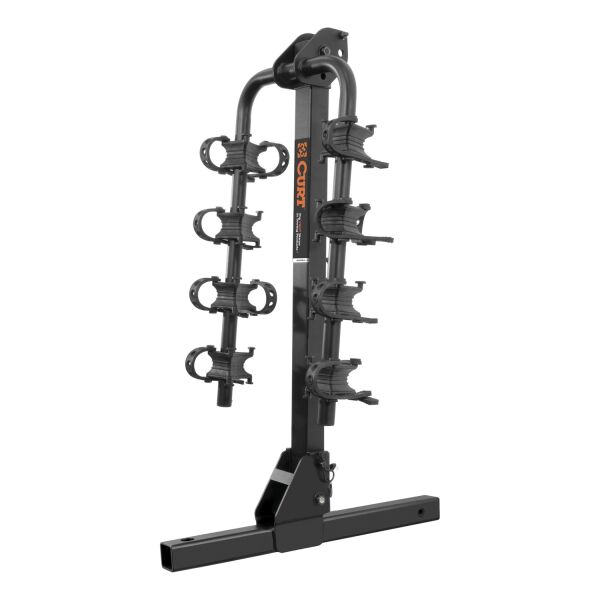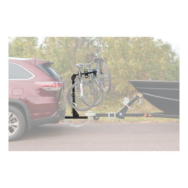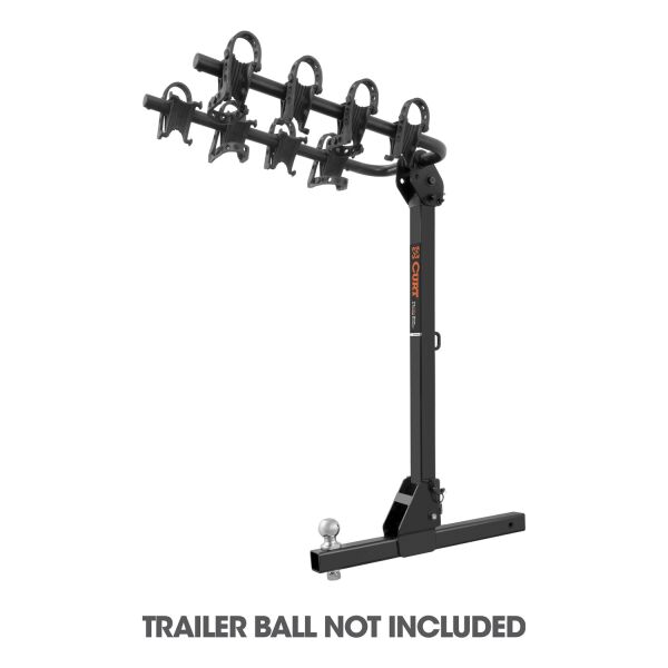 The biggest obstacle you face on your cycling adventures should not be the storage space of your own vehicle. If you need it on the trail, then we think you should be able to Bring It! The CURT towable hitch-mounted bike rack is a simple but reliable way to pack your vehicle for those weekend excursions. It allows you to store your bicycles, using your trailer hitch, without eliminating other towing options. It combines the function of our dual receiver ball mount with the convenience of our hitch-mounted bike rack design. Constructed from high-strength steel and protected by a rust-resistant powder coat finish, the CURT towable bike rack shank is the key to multipurpose towing. It features a 2" x 2" shank that inserts into any 2" receiver tube opening and has a 3/4" trailer ball hole to accept a 1-7/8" or 2" trailer ball. The towable bike rack shank offers a gross trailer weight capacity of 2,000 lbs. and a tongue weight capacity of 200 lbs., making it an excellent choice for most small trailers, including boat trailers and utility trailers (NOTE: Never exceed the lowest weight capacity of any towing component. i.e. the vehicle, hitch, trailer, etc). The towable shank also accepts an anti-rattle kit and has a tilt-away feature that allows for convenient tilting of the bike rack, away from the vehicle, for easy access to the trunk or rear cargo area. The bike rack portion of this towable bike rack offers all the advantages of CURT standard hitch-mounted bike racks. It is able to hold up to four bikes at a time and has a maximum weight capacity of 180 lbs. The adjustable rubber cradles keep your bikes fully secure, while the bolt-together design and foldable arms offer compact storage during the offseason. For some of us, the only way to see the world is with our feet on the pedals and our hands on the handle bars. Wherever your bike takes you this weekend, always Bring It with CURT.