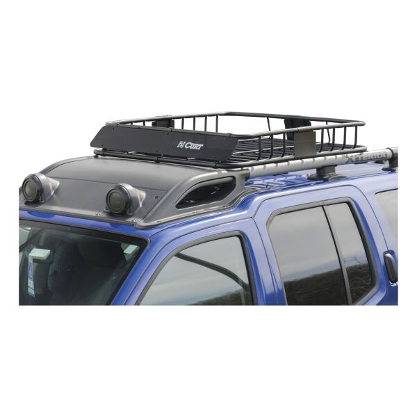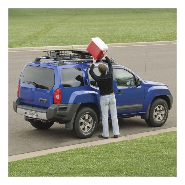 Even with the roomiest of vehicles, packing the car for a long trip can quickly turn into a frustrating game of Tetris. CURT cargo carriers are a simple yet effective solution for maximizing the storage area of your vehicle. The CURT roof rack cargo carrier is a roomy and versatile cargo carrier with a lightweight design and easy installation. It features a simple two-piece assembly and mounts to most styles of roof rack crossbars. With its strong steel construction and durable E-coat and black powder coat finish, it easily stands up to the tough trails and long miles ahead. One of the key advantages to the CURT roof rack carrier is its extension option. With the extension piece installed, this cargo rack goes from a little over ten square feet of storage room to an impressive 16 square feet, providing a lot of extra room for storing bulkier items. The roof rack cargo carrier readily accepts a CURT cargo bag or cargo net to get you packed up and on your way with less hassle.