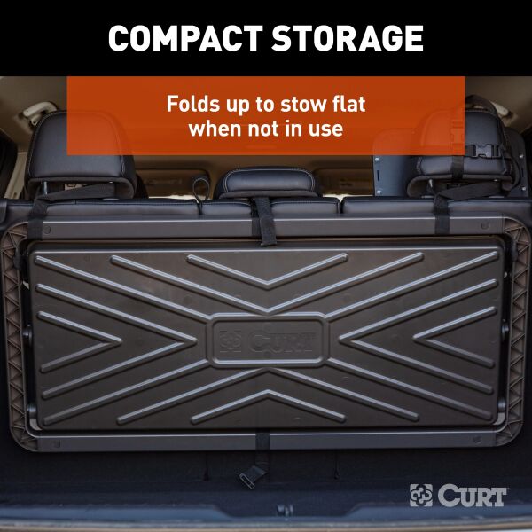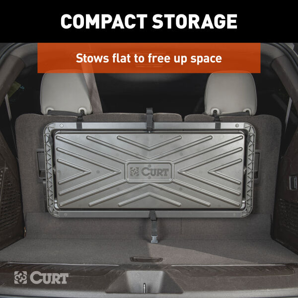 Ready for a trunk that feels clutter-free and functional? Tired of bags tipping over and gear sliding around? Pakka Cargo Caddie – The Ultimate Trunk Organizer instantly creates a second level of storage in your SUV or crossover trunk, keeping grocery bags, sports gear, and family essentials upright and organized. With a roomy 34" x 14" tray and 2" high walls, it securely holds bags, coolers, strollers, folding chairs, and more. Two adjustable height settings leave space underneath for larger items on the trunk floor, like suitcases, sports equipment, or camping gear. Made from durable molded plastic, Pakka supports up to 50 lbs. and installs in seconds with no tools required. When you don’t need it, the Cargo Caddie folds flat against the seatback to save space. Perfect for everyday errands, weekend sports practices, fishing trips, or family road trips—the Pakka Cargo Caddie keeps life organized wherever you go.