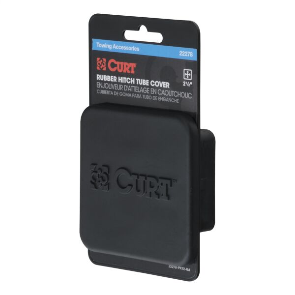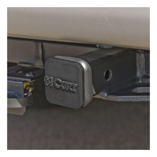 If you own a vehicle with a trailer hitch, you know how quickly the receiver tube can get built up with dirt, debris and road grime. It does not take long before inserting a ball mount or hitch-mounted accessory into your trailer hitch becomes more difficult than it should ever have to be. With enough time and moisture exposure, the inside of a receiver tube can become seized up with rust, making it very difficult to use. Keep your trailer hitch's receiver tube clean and protected when not towing with one of CURT's attractive and durable tube covers. This CURT 1-1/4" x 1-1/4" receiver tube cover is constructed from quality rubber and mounts on your trailer hitch with a friction fit, meaning no hitch pin or clip is required. At CURT, we want to give you a complete towing solution and that includes providing you with the products necessary to maintain your towing equipment. Defend your trailer hitch from the harsh elements with a CURT trailer hitch cover.