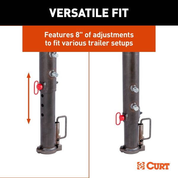 The CURT 2-5/16" Adjustable Gooseneck Coupler is engineered for high-strength towing and designed with convenience in mind. With a 2-5/16" ball socket rated for 30,000 lbs., it provides the reliable strength needed for heavy-duty hauling. Its adjustable height feature offers 8" of flexibility, with a retracted height of 29-1/3 inches, making it adaptable to various trailer setups. The self-centering locking plate ensures easier and quicker hookups, while the easy-access lock handle offers a secure and hassle-free connection every time. Compatible with most round-tube trailer tongues, this coupler is versatile and practical for a range of towing applications. Its reinforced material around the pin holes prevents elongation and reduces wear, extending the life of the coupler, while the durable steel construction ensures dependable towing strength. Safety-tested to meet SAE J2638 specifications, the coupler is designed to withstand the rigors of heavy-duty use. Whether you’re hauling equipment or livestock, the CURT Adjustable Gooseneck Coupler delivers reliable performance and long-lasting durability on every journey.