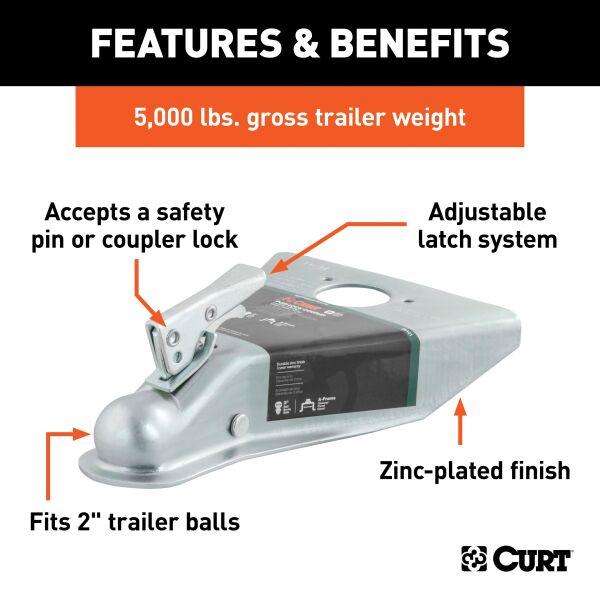 - CURT 25101 A-Frame Trailer Coupler, 2-Inch Hitch Ball, 5,000 lbs