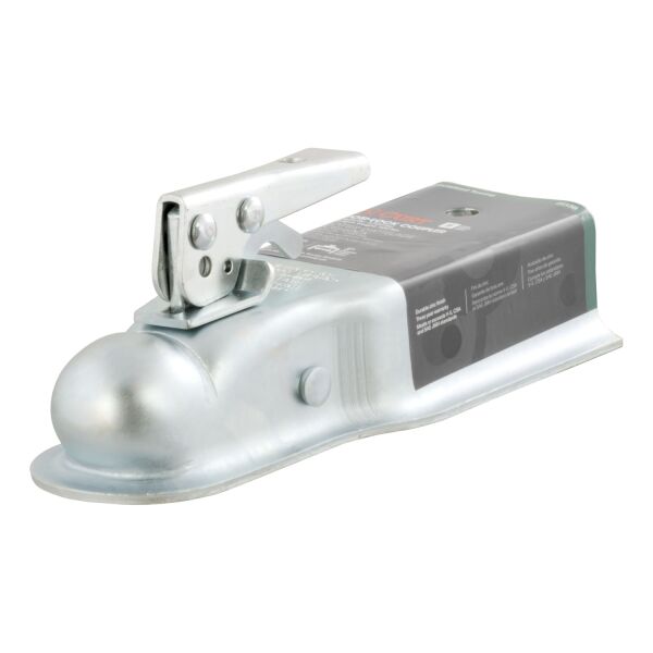 - you also need a trailer that can stand up to the road ahead. That means equipping it with a coupler that is built to go the distance. CURT straight-tongue couplers, featuring our Posi-Lock latch, are the most common type of trailer coupler. With a mounting channel designed to fit onto a straight trailer tongue, the Posi-Lock coupler is easy to install. It is made from hardy steel construction and has a durable zinc finish to protect from corrosion, wear and tear. The lockable latch mechanism on CURT Posi-Lock couplers is easy to operate and adjusts by tightening or loosening a simple bolt. This CURT straight-tongue coupler features a gross trailer weight capacity of 3,500 lbs. and a tongue weight capacity of 500 lbs. It has a 3" channel and fits a 2" diameter trailer ball. All CURT couplers include a limited lifetime warranty and feature a lockable latch to give you peace of mind.