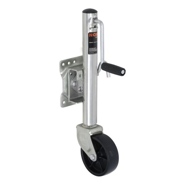 In our goal of being your best source for all things towing, the CURT line of trailer jacks is designed with care and manufactured with pride. CURT jacks are made with quality to promote the life and function of your trailer, and they come in several different styles to accommodate your needs, whether you are a frequenter of the boat landing, the campground, the racetrack or the field. Designed to withstand the wear and tear of frequent water exposure, CURT marine jacks are the jack of choice for the avid fisherman or boating enthusiast. Our marine jacks have a few features that make them a special addition to our trailer jack line. Unlike any of our other jacks, CURT marine trailer jacks are equipped with wheels, allowing for greater mobility and easier coupling of your trailer. Choose from models with one or two wheels. Marine jacks also have a heavy-duty pull-pin that allows them to pivot on their mounting bracket to be out of the way for travel. To protect them from corrosion and the damage of moisture, these jacks come with a zinc finish. This CURT marine jack features a support capacity of 1,200 lbs., a lift capacity of 1,200 lbs., a travel of 10" and a wheel diameter of 6". It comes with a side-wind handle and all the necessary bolt-on hardware for a complete installation. It does not matter what kind of trailer you tow -- a boat trailer, utility trailer, livestock hauler or recreational vehicle trailer -- if you have a receiver-style trailer, you will want a jack that complements its function. For a trailer jack that will not steer you wrong, CURT has the answer.