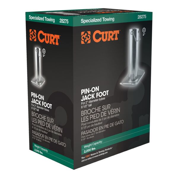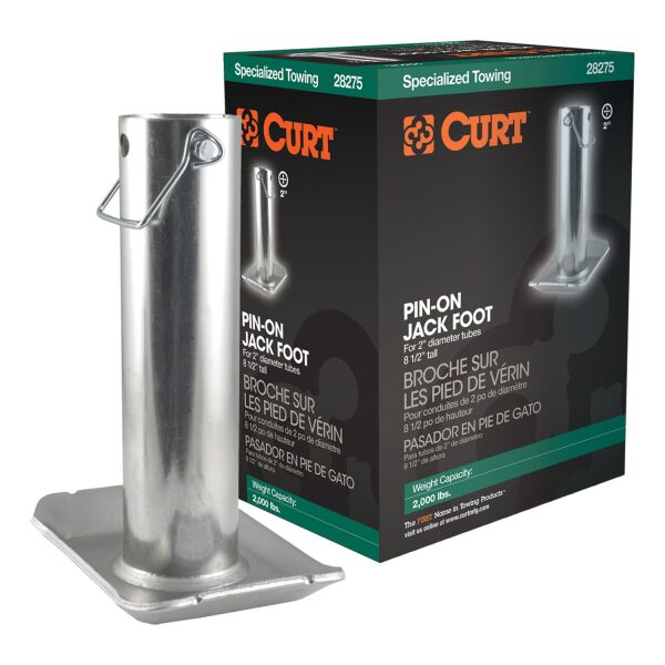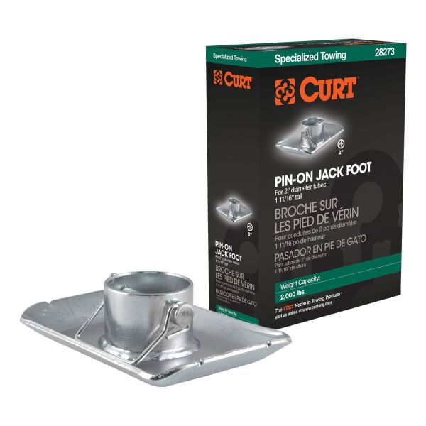 In our goal of being your best source for all things towing, the CURT line of trailer jacks is designed with care and manufactured with pride. CURT jacks are made with quality to promote the life and function of your trailer, and they come in several different styles to accommodate your needs, whether you are a frequenter of the boat landing, the campground, the racetrack or the field. Add stability and support to your trailer jack and trailer with a CURT jack foot. This hardy steel jack attachment features a simple bolt-on mounting system and can be used on a number of CURT jacks and many competitive models. It offers a weight capacity of 2,000 lbs. It does not matter what kind of trailer you tow -- a boat trailer, utility trailer, livestock hauler or recreational vehicle trailer -- if you have a receiver-style trailer, you will want a jack that complements its function. For a trailer jack that will not steer you wrong, CURT has the answer.