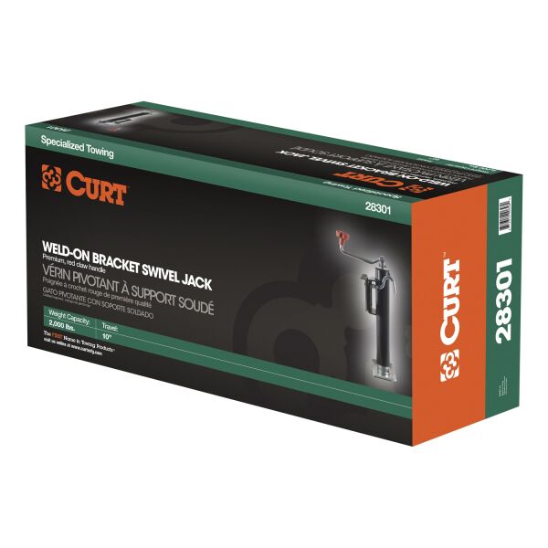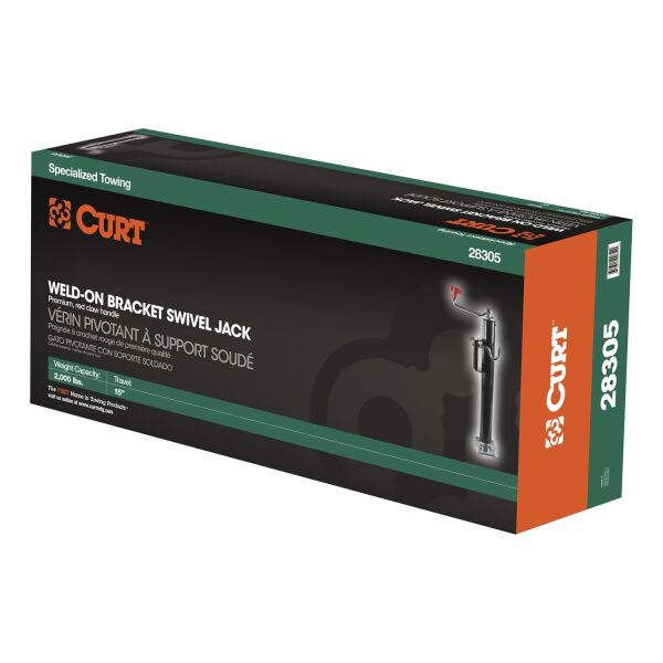 In our goal of being your best source for all things towing, the CURT line of trailer jacks is designed with care and manufactured with pride. CURT jacks are made with quality to promote the life and function of your trailer, and they come in several different styles to accommodate your needs, whether you are a frequenter of the boat landing, the campground, the racetrack or the field. CURT swivel jacks get their name from the pull-pin swivel feature that allows the jack to pivot on its mounting bracket and swing up and out of the way for travel. Our swivel trailer jacks are broken into two categories: pipe mount and bracket mount. This CURT bracket mount swivel jack features a support capacity of 3,000 lbs., a lift capacity of 2,000 lbs. and a travel of 15". With a jack foot plate welded on the bottom, this type of jack provides added stability for your trailer on rough terrain. It comes with a top-wind handle and has a weldable bracket for secure mounting. It does not matter what kind of trailer you tow -- a boat trailer, utility trailer, livestock hauler or recreational vehicle trailer -- if you have a receiver-style trailer, you will want a jack that complements its function. For a trailer jack that will not steer you wrong, CURT has the answer.