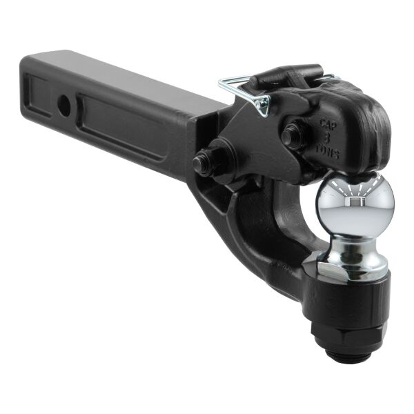 - In agriculture, construction and even military applications, pintle hitches are the trusted product of specialized towing. They are notorious for their high weight capacity and simple design. The basic pintle hitch is essentially a hook and loop, with the hook attached to the vehicle and the loop mounted on the trailer. Because of their simple design, pintle hitches are able to have thicker metal construction and more secure coupling. CURT combination ball and pintle hitches combine both a pintle hook and a standard trailer ball to give you a more complete towing option on your heavy-duty truck or SUV. This particular receiver-mount ball and pintle hook is designed to insert into any 2" x 2" receiver tube. With a trailer ball capacity of 10,000 lbs. and a pintle capacity of 16,000 lbs., it offers a solid complement to most class 4 and class 5 trailer hitches (NOTE: Never exceed the lowest weight capacity of any towing component