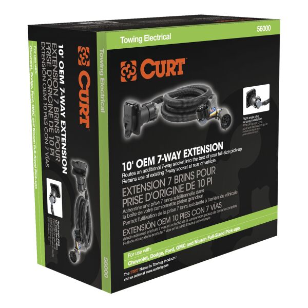 CURT 56000 10-Foot Vehicle-Side Truck Bed 7-Pin Trailer Wiring Harness Extension, Select Chevrolet, Dodge, Ford, GMC, Nissan, Ram, Toyota