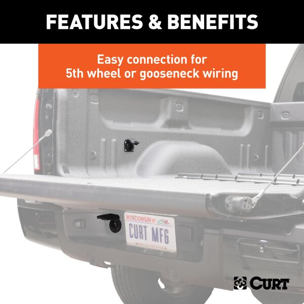There is nothing like the luxury and power that go along with heavy-duty towing. 5th wheel RVs offer a deluxe, home-away-from-home experience unlike any other, while gooseneck trailers possess a strength that far surpasses most other trailer options. As with any trailer, however, 5th wheels and goosenecks must be equipped with the proper lighting and electrical systems, and tend to require even more complex connectors than a standard receiver-type trailer setup. Make things simple with a CURT 5th wheel / gooseneck extension harness. These wiring harnesses are designed to put an extra connector socket in the bed of your pickup truck while still retaining power to the rear connector socket mounted on your bumper. This is done by plugging into the back of the existing original equipment (OEM) harness and routing through the body of the truck to a hole in the truck bed, providing a connector that is ready to accommodate your 5th wheel or gooseneck trailer. This CURT extension harness is designed to work with 7-way RV blade connectors and comes in a length of 7'. It is compatible with certain years of the Ford F-150, F-250 Super Duty and F-350 Super Duty (see application to verify fitment). For trucks with an aluminum body, galvanic corrosion can become a problem when installing vehicle-to-trailer wiring without the appropriate protection. This kit includes isolators that allow you to install the wiring harness extension in an aluminum truck bed without having to worry about ruining the truck's finish. It includes four bolts for secure mounting and four plastic well nuts to isolate the fasteners from all aluminum surfaces.