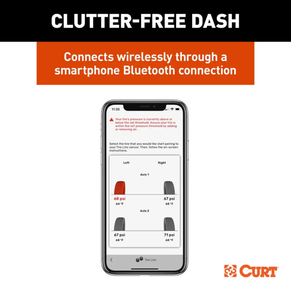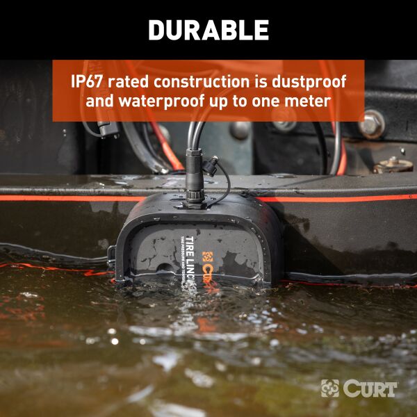 The Tire Linc Auto TPMS system, developed by CURT, ensures your safety and convenience while towing by monitoring your trailer's tire pressure and temperature in real-time. With this advanced technology, you can avoid the hazards of towing with underinflated or overinflated tires, saving you the hassle of manual checks before, during and after towing. Tire Linc notifies you directly on your smartphone about the temperature and pressure of your tires as you tow, keeping you informed and helping you prevent a dangerous blowout. Our powerful technology lets you monitor up to 20 tires simultaneously, making it the ideal solution for large enclosed trailers, boat trailers, and agricultural or utility trailers. The TPMS technology seamlessly integrates with the CURT OneControl® app and provides real-time notifications on tire status to your smartphone. The need for multiple monitors or displays is eliminated, streamlining the monitoring experience. The system is easy to set up: simply plug in your repeater to the dock, screw the Tire Linc sensors onto the valves and link your system to the OneControl app. You can personalize your preferred tire ranges within the app, putting you in complete control of your tire monitoring. Tire Linc is engineered with advanced repeater technology to ensure that your smartphone always receives the most current information with a strong connection. The system comes with four sensors and repeater and dock assemblies. The Alert Indicator and additional sensors are optional add-ons. As a leading supplier of premier towing products, CURT is dedicated to improving your towing experience with top-quality products. Our team is constantly working to develop new and innovative solutions to enhance your towing experience. Trust Tire Linc for reliable connectivity, and stay informed, confident, and safe on the road.