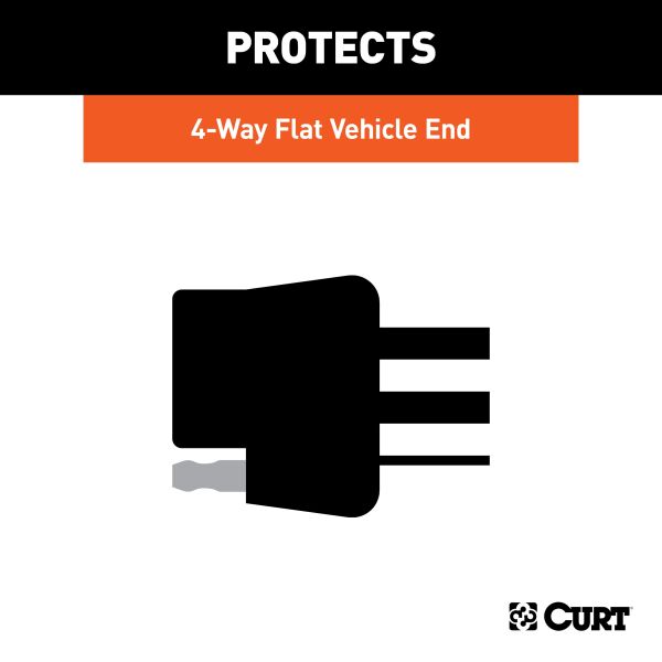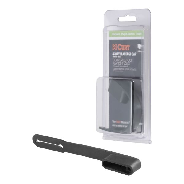 Like trailer hitches and ball mounts, electrical connectors range all over the board in shape, size and capability, but no matter what your trailer's electrical functions are, you need a solid connection to keep the power flowing and ensure safety on the road. CURT electrical connectors are designed and manufactured to give you a reliable connection every time you plug in your trailer. Protect your vehicle-to-trailer wiring connection with a CURT electrical socket cover. This 4-way flat dust cover is made with durable plastic to easily resist the elements and help maintain good connectivity. It comes with a convenient attachment tab to avoid loss and is specifically designed to fit a 4-way flat socket on the vehicle side of the connection.