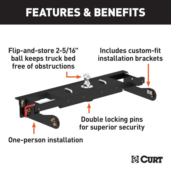 CURT 60680 Double Lock EZr Gooseneck Hitch, 2-5/16-In. Flip-Over Ball 30K, Fits Select Chevrolet Silverado, GMC Sierra 2500, 3500 HD