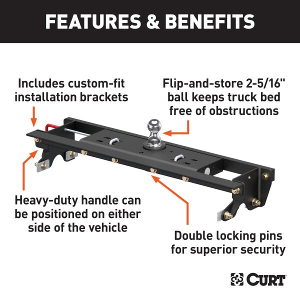 - CURT 60724 Double Lock Gooseneck Hitch, 2-5/16-Inch Flip-Over Ball 30K, Fits Select Ford F-150