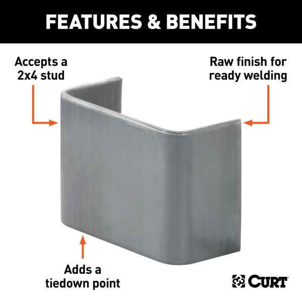 Making sure that your cargo is tied down and fully secure for the journey is important for any towing job. Not only is unsecured cargo a danger to you, your passengers and your fellow drivers, but it can also cause damage to your trailer, pickup truck bed or vehicle cargo area, as well as to the cargo itself. Together with our cargo straps and safety chains, CURT tiedown anchors are easy to mount in any trailer, truck or full-size van, and they help keep your items safe for the road ahead. This weld-on stake pocket is designed to add a convenient anchoring point for cargo straps or transport binder chain. It also features an inside dimension of 3-1/2" x 1-5/8", making it perfectly sized to accept a 2x4 stud. The high-strength steel construction and raw finish allow it to be readily welded onto the frame of a flatbed trailer or utility trailer.