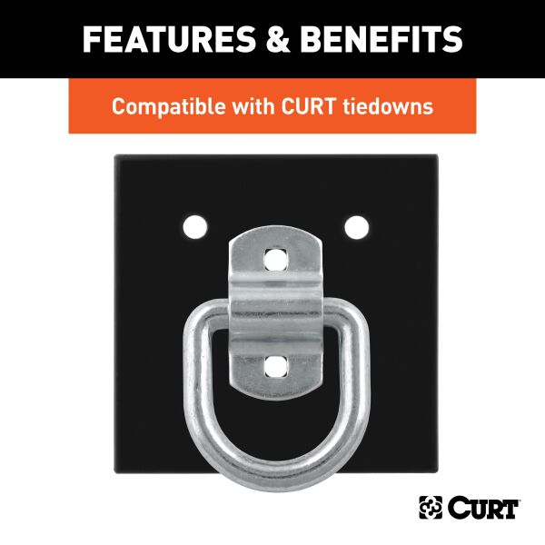 Making sure that your cargo is tied down and fully secure for the journey is important for any towing job. Not only is unsecured cargo a danger to you, your passengers and your fellow drivers, but it can also cause damage to your trailer, pickup truck bed or vehicle cargo area, as well as to the cargo itself. Together with our cargo straps and safety chains, CURT tiedown anchors are easy to mount in any trailer, truck or full-size van, and they help keep your items safe for the road ahead. This tiedown backing plate is designed to strengthen a tiedown anchor and allow for more flexibility in installation. It features six holes to fit CURT tiedowns #83600, #83650, #83740 and #83742. The plate is finished in a black powder coat for excellent rust resistance, and it measures a total of 6" x 6" with 7/16" diameter holes. The center holes are spaced 2" apart, center to center, and the outer holes are spaced 3" x 3-1/4", center to center. Mounting screws are not included in this package.