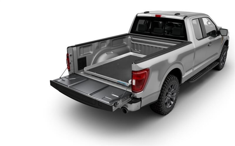 The toughest and most durable bed slide on the market. Built from heavy gauge, powder coated American steel and industrial grade marine plywood (coated with a thermoplastic top sheet), the CargoGlide truck bed slide can take all of the use and abuse of the jobsite and the environment. Load it up with compressors, welders, tool boxes, you name it. All of your work items slide right out to you every time.