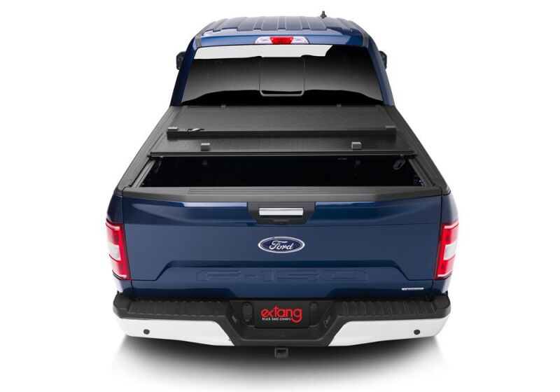 Introducing Extang’s Xceed – a seamless and secure hard folding truck bed cover designed and engineered to greater expectations. This flush mounted, hard-folding cover offers full bed access when open, and adds a seamless and polished look to your truck when closed. Xceed was precisely Extang Engineered to provide excellent coverage while ensuring maximum security and ultimate style. Go completely sleek without minimizing the durability of your truck bed cover. Flush mounted to provide an extreme low profile appearance and engineered to complement your truck's functionality and looks. Xceed’s matte black finishes are the final touches to enhance the overall appearance of your truck. Xceed also goes double duty on superior security. The EnduraCoat moisture-proof vinyl covering is dedicated to protecting your cargo from earth’s elements and the Secure Rotary Release knob hides the operation cable to add an extra step of protection. Together, you can rest assured that your cargo is entirely secured. Stowing large cargo just got easier. Xceed folds all the way up to the back window, allowing complete, full bed access with a unique four-panel construction to reduce the overall height when open.