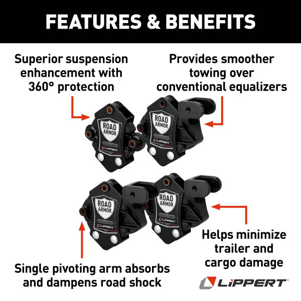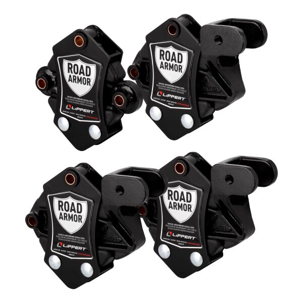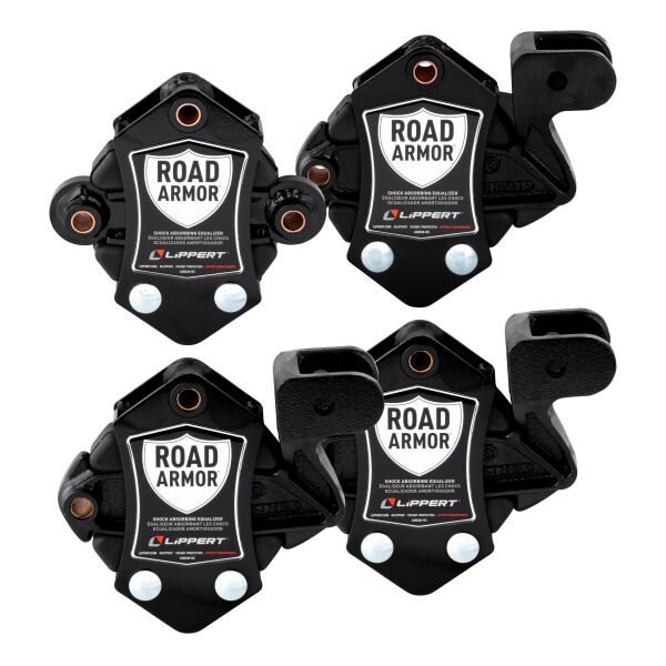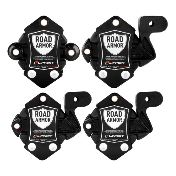 With the Road Armor system integrated into your trailer, comfortless rides are one less thing for you to worry about while you travel. With its anti-shock technology, road shock and vibrations transferred from both the leading and trailing leaf springs are dampened, resulting in less chucking and a smoother ride. Engineered to obtain maximum absorption, Road Armor is designed to offer RVers and trailer owners a superior suspension enhancement solution that can be added as an easy aftermarket upgrade and is also offered as a great substitution for torsion axles. The patent-pending design incorporates a single pivoting arm that is permanently engaged with the trailer axle leaf springs. This allows Road Armor to constantly absorb and dampen road shock whether it is coming from the leading or trailing spring, utilizing the trailer’s natural motion. Once road shock and vibrations are encountered, they are transferred to one of two customized durometer rubber shock absorbers. Competing products use rubber compounds with the consistency of a hockey puck, which does little to absorb anything and transfers this shock directly into the RV chassis and concurrently into the sidewall. How is 360 degrees of protection attainable? Simple, each side of the Road Armor Equalizer has 3 inches of total vertical travel capability. When the lead leaf spring encounters road shock, it will kick the Road Armor’s lead side vertically up to one and a half inches, while the trailing side will push down up to one and a half inches. The adverse reaction happens on the opposite side of the Road Armor Equalizer when the trailing axle incurs the same road vibration. That’s 360-degrees and 6 total inches of unparalleled protection!