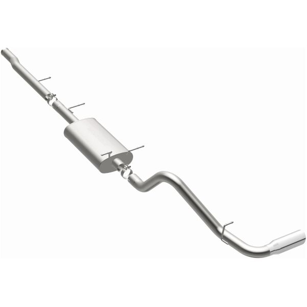 The MagnaFlow Street Series Cat-Back Performance Exhaust System 15564 brings out the personality of your Truck with our signature resonant, powerful engine tone and dyno-proven performance. Thanks to its fast-flowing, mandrel bent 3in. main piping and 1 Straight-Through mufflers ending in a Single Passenger Side Rear exit with 4in. Polished Welded-On Double Wall Angle Cut Rolled Edge tips, this Truck exhaust kit has the performance chops to match its sporty sound and appearance. Upgrade your ride to the next level with an exhaust that has the pipes to put other Truck's to shame. With this system your vehicle will be producing Moderate exterior and Mild interior sound levels while leaving other cars and trucks feeling envious at every stoplight. Exhaust kit 15564 features a cat-back layout that replaces your ride's stock exhaust components from near the catalytic converter on back. Extensive 3D scanning during development has resulted in a direct-fit design that you can easily install yourself. 15564 is produced using CNC precision robotic manufacturing techniques and is backed by MagnaFlow's 1-year limited finish warranty and limited lifetime construction warranty.