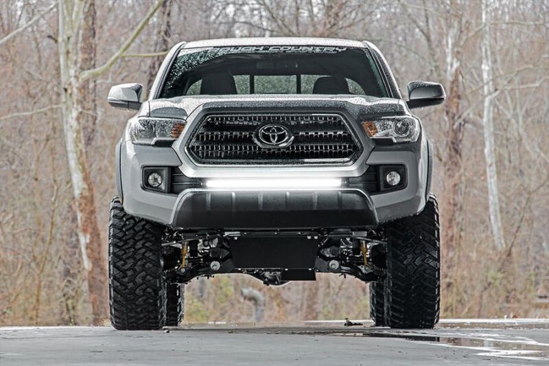 • Title Rough Country - LED Light Kit - Lower Grille Mount - 30 in. Black Single Row - White DRL - Toyota Tacoma (16-23)