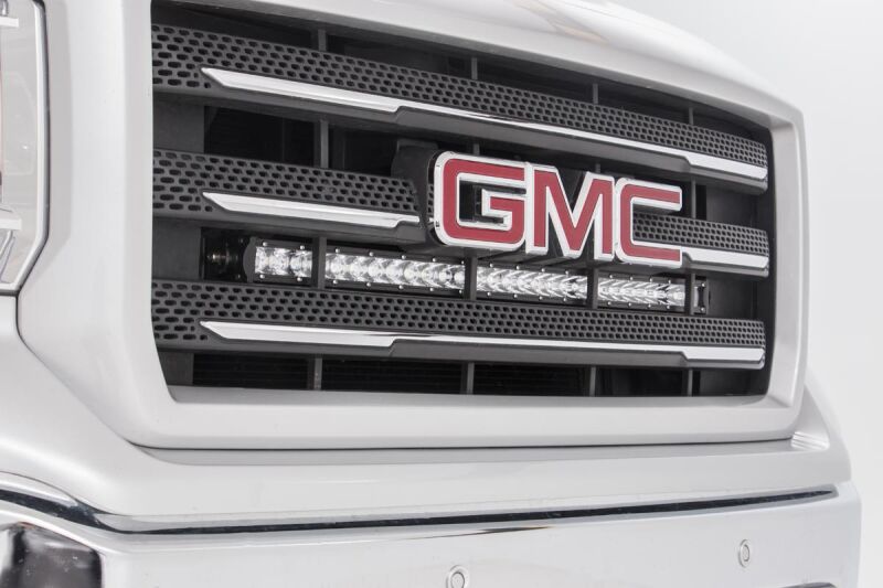 Bring the illuminating power of Rough Country's 30-inch Single-Row Curved LED to your 14-18 GM 1500 Pickup with Rough Country's discreet 30-inch LED Hidden Grille Kit. This unique mounting system installs behind the grille, perfectly holding your 30-inch Curved Single-Row LED Light Bar in the proper location for both ample lighting and airflow. This LED Hidden Grille Kit blends in so well it looks like factory equipment, peeking out only at just the right angle. Turn them on, and light floods outward, giving you unparalleled access to off-road lighting in a clean, flush kit. Rough Country's LED Light Bars include a durable die-cast aluminum, IP67 waterproof housing for unsurpassed protection against the elements. Each LED also features a premium flat-wound, braided, IP68 waterproof wiring harness with a toggle switch and in-line fuse. Includes Rough Country's 3-year LED Warranty and Lifetime Mount Warranty.