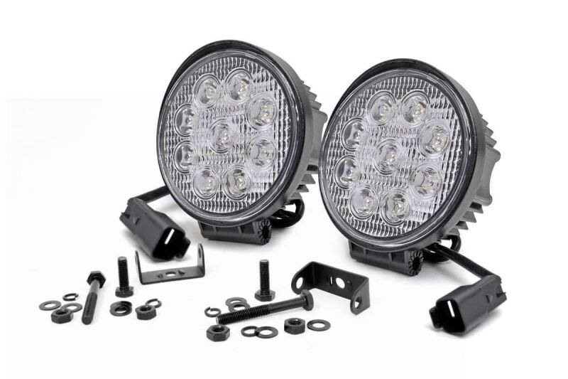 Command The Dark: Get the classic round design with cutting-edge LED technology in one flawless package! Featuring two all-weather, round LED lights that deliver a total of 54 Watts and 4320 Lumens, this setup ensures you'll see clearly even in the toughest conditions. Designed for durability, these lights boast a simple stud-mount design and a rugged Die Cast Aluminum housing to withstand the harshest environments. With an IP67 Waterproof Rating, your 4" Round LEDs remain protected against the elements, keeping your visibility strong no matter the weather. Plus, enjoy peace of mind with Rough Country's 3-Year Limited Warranty!