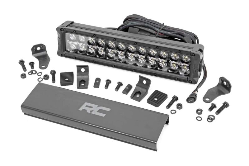 Command the Dark: Light up the night and stay on the trails longer with Rough Country's sleek 12-inch Dual Row CREE LED Light Bar. This powerful light bar offers 10,800 lumens of illumination and 120 watts of energy-efficient output, all housed in a stylish, modern frame. Featuring 24 high-intensity 5-watt CREE LEDs, it delivers superior brightness and durability for any adventure. The sleek black panel design complements vehicles with black accents, such as grilles, wheels, bull bars, or steps. Designed for all-weather performance, this light bar comes with a durable die-cast aluminum housing, ensuring maximum strength and heat dissipation. It s also backed by an IP67 waterproof rating, providing reliable performance even in harsh conditions. This light bar contains 12 cool white daytime running LEDs for enhanced visibility and safety. Installation is made simple with the included premium, flat-wound wiring harness, complete with an on/off switch for easy operation. The light bar also features Rough Country's Light Bar Noise Silencers, designed to eliminate unwanted hums, whistles, and wind noise typically found in mounted LED light bars. This light bar includes both end mounts and adjustable base mounts, offering multiple mounting options for maximum versatility. A snap-on cover protects the lens, while Moisture Breather technology reduces moisture build-up inside the light. Plus, it s all backed by a 3-year warranty for peace of mind.