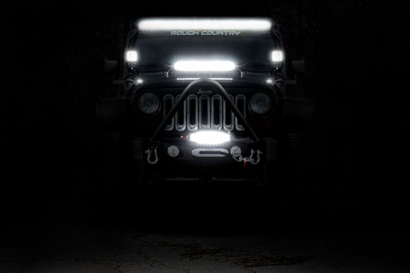 Command the Dark: Light up the night and stay on the trails longer with Rough Country's 50-inch Dual Row CREE LED Light Bar. This powerful light bar offers 23,040 lumens of illumination and 288 watts of energy-efficient output, all housed in a stylish, modern frame. Featuring 96 high-intensity 3-watt CREE LEDs, it delivers superior brightness and durability for any adventure. The sleek black panel design complements vehicles with black accents, such as grilles, wheels, bull bars, or steps. Designed for all-weather performance, this light bar comes with a durable die-cast aluminum housing, ensuring maximum strength and heat dissipation. It s also backed by an IP67 waterproof rating, providing reliable performance even in harsh conditions. Installation is made simple with the included premium, flat-wound wiring harness, complete with an on/off switch for easy operation. The light bar also features Rough Country's Light Bar Noise Silencers, designed to eliminate unwanted hums, whistles, and wind noise typically found in mounted LED light bars. This light bar includes both end mounts and adjustable base mounts, offering multiple mounting options for maximum versatility. A snap-on cover protects the lens, while Moisture Breather technology reduces moisture build-up inside the light. Plus, it s all backed by a 3-year warranty for peace of mind.