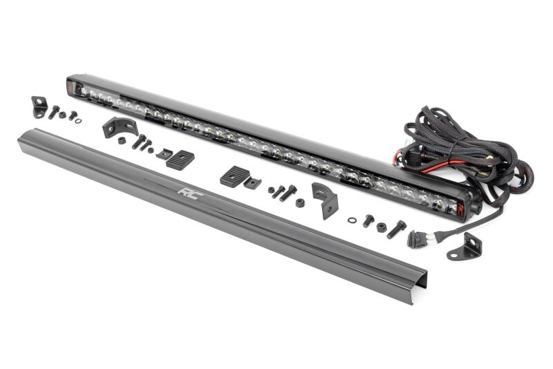 Light up the night. Get ready to see the night like never before with Rough Country's Spectrum 30-inch Single Row Light Bar! Boasting an ultra-sleek bezel-less design, it packs 165 watts of raw power and a whopping 14850 lumens! With both spot and flood beam pattern options, you'll get the perfect combination of distance projection and wide-beam coverage. The 30-inch Spectrum will light your way through the darkest trails on your next Overlanding, rock crawling, four-wheeling, or trail riding adventure. Dependable durability. This high-intensity LED light bar features an IP67/IP69K waterproof rating with an impact and UV-resistant lens. Each light contains 33 -5W Osram LEDs and a tinted diffused lens to provide high-performance output with minimal glare while giving you optimal visibility off-road. Our Diecast aluminum housing makes this light bar incredibly durable, so you can depend on them to command the dark for years to come. Installation and Warranty. Rough Country's Spectrum 30-inch Single Row Light Bar is designed for easy installation, allowing you to get back on the road in no time. It comes with snap-on covers, base mounts, end mounts with hardware, wiring harness, and an on/off switch so you can have it on your rig in no time. Plus, it includes a three-year warranty, so we've got your back when you hit those rough roads out there!
