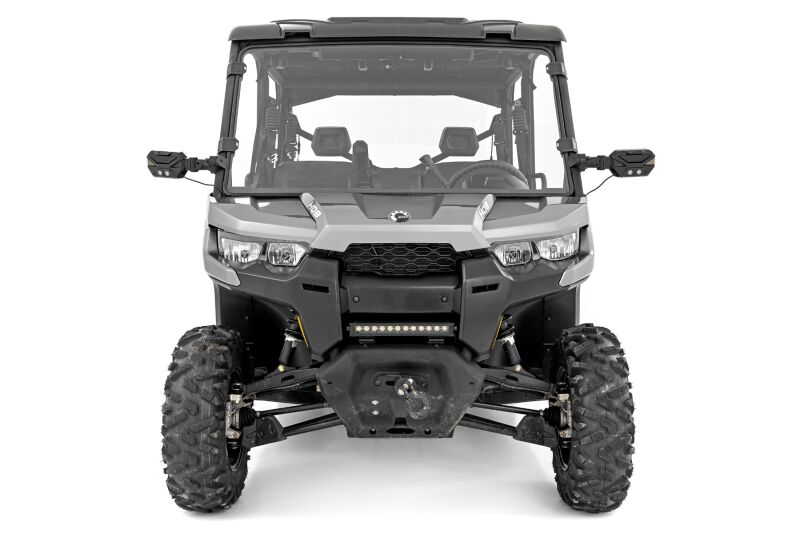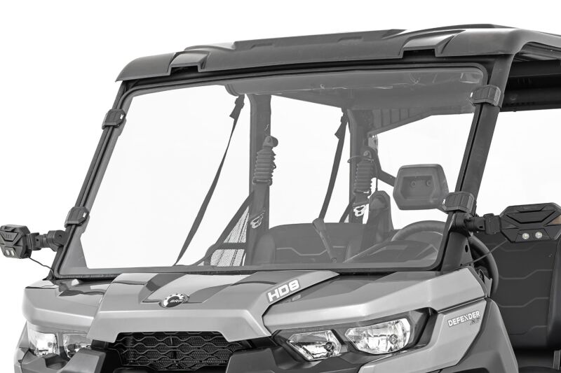 Added Protection and comfortability. Protect the occupants of your Can-Am Defender from off-road hazards such as rocks, branches, and other debris with Rough Country's Scratch-Resistant Windshields. UTV Windshields offer a clear visual of the trail ahead and allow for a much more comfortable outing! High-quality Polycarbonate Construction. Rough Country UTV windshields are constructed from thick polycarbonate material that is precision cut for a perfect fit. The polycarbonate material provides an ideal combination of clarity, flexibility, durability that outperforms glass, acrylic, and other windshield materials. Durable Scratch and UV Resistance. Each windshield is not only constructed from thick polycarbonate material but enhanced by a secondary AR2 hard-coating process. This process completely coats the windshield with a hardened, scratch-resistant barrier. This treatment also provides the additional benefit of UV protection. Easy Installation. With a simple strap-on installation process, installing a Rough Country windshield couldn't be easier. Within 15 30 mins you can be ready to hit the trails. Limited-Lifetime Replacement Warranty. Rough Country's Scratch-Resistant Windshields are backed with a limited lifetime replacement warranty towards manufacturer defects. As such, the product is protected from structural and workmanship damage after the date of purchase. With our industry-leading warranty give yourself peace of mind when using Rough Country's Suspension products!