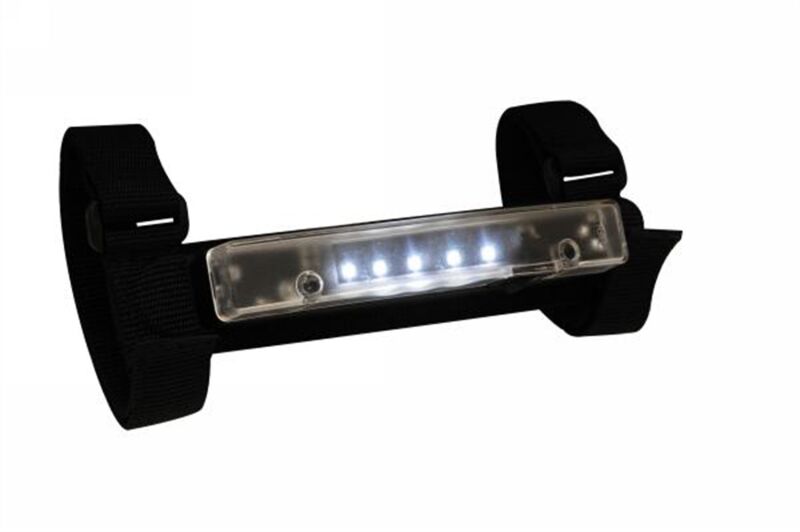 Trail light super brite LED - universal light kit with long life LED bulb technology. Superbrite light assembly is a 8x1-inch quick release light fixture for easy removal and mobility. Once separated from straps, the back plate magnet allows for the light fixture to attach to any metal surface. Easy installation with wraparound hook and loop fastening system for square or round bars up to 4 inch dimension. Uses three AAA batteries (not included).
