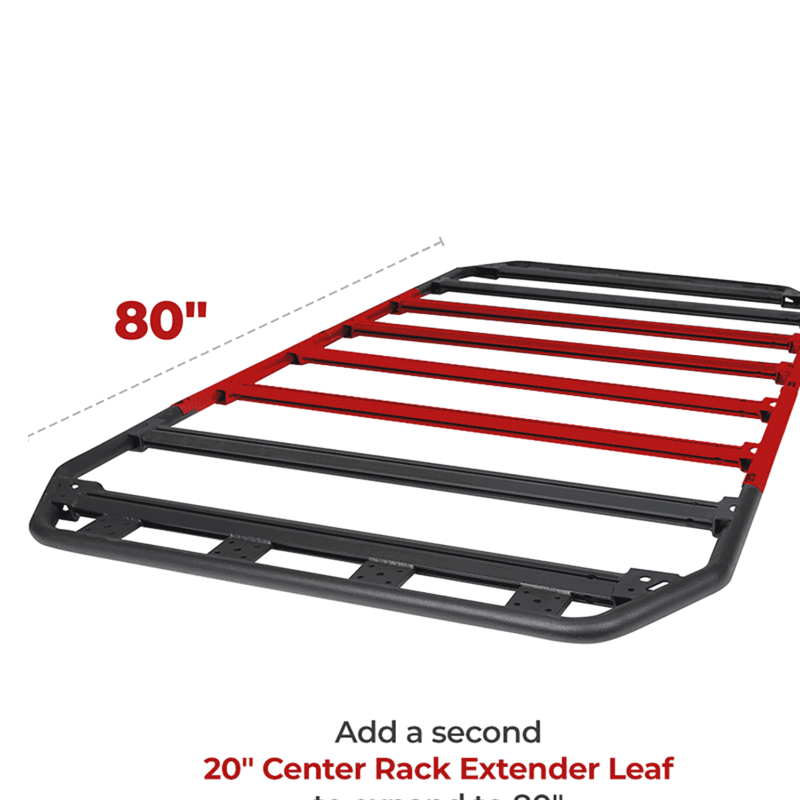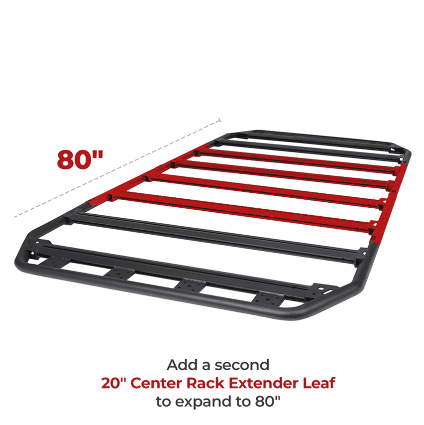Fully welded Universal Center Section increases the length of the rack by 20 inches per section – add as many as you like.