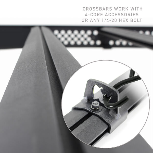 Go Rhino's Ceros RoofRack brings cutting edge style to the 2019-2023 Chevy/GMC 1500.The low profile design offers easy,no-drill installation and the exclusive 4-CORE crossbars offer unlimited mounting options for accessories, gear and tools