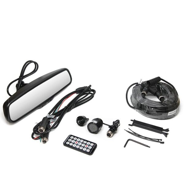 This system is complete with a color 4.3" TFT-LCD Mirror Monitor which attaches to the windshield, replacing the existing rear view mirror inside the vehicle. A clip-on version of the monitor is also available (See item options on the right). The system has mirror image capability, a power harness with two camera inputs, a 120 camera with 30 foot infra-red night vision and all the wires, connectors and mounts you will need. The system is completely weatherproof with an IP68 rating, strong and reliable, shock resistant with a 15G vibration rating (highest in the industry) and comes with a full year warranty.