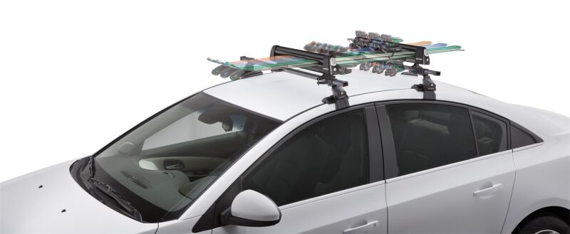 Attaches easily to vehicle rack system. Easy to open while wearing gloves with oversized push button release. Rubber arms grip skis and boards for a secure hold. Locks included for additional security. Fits SportRack Roof Rack Systems, square, round, and most factory racks.